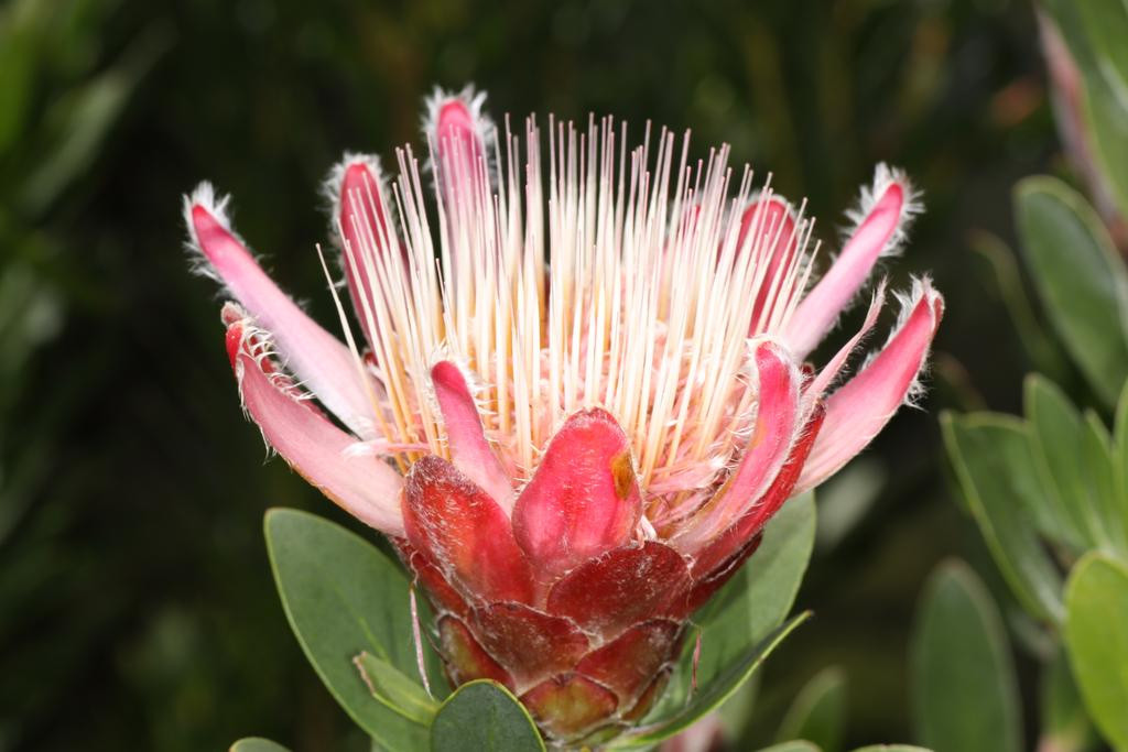 "Protea venusta (red sugarbush) from the winter rain Karoo" by Derekkeats via Flickr, Creative Commons Attribution ShareAlike.